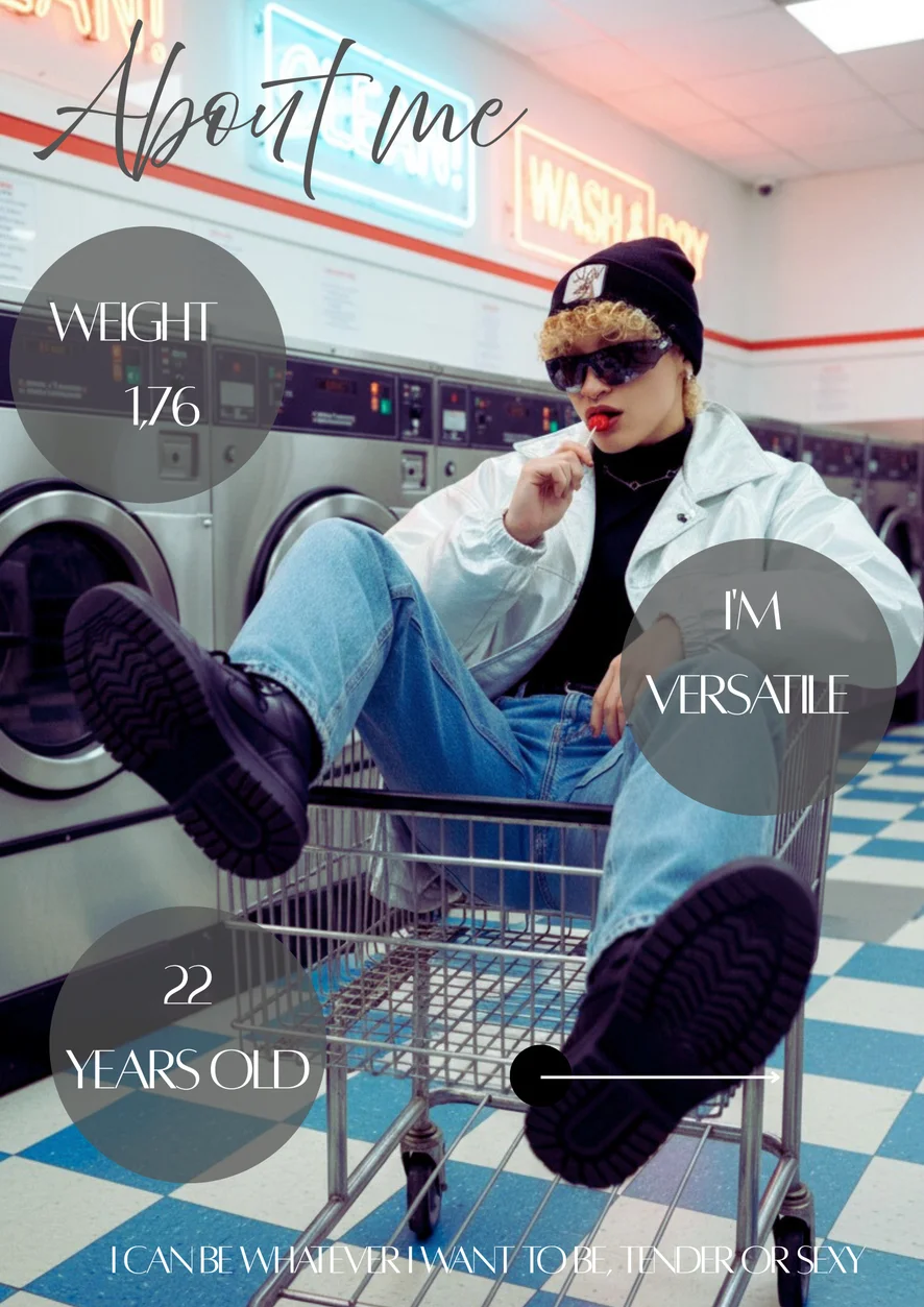 I’m 176 cm tall, I wear size 41 shoes, I have blonde hair, and blue eyes. I’m versatile, and I absolutely love to dance, have fun, watch movies and series, listen to music, and have great conversations!